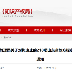 山东省市场监管局对拟废止的218项山东省地方标准(计划)进行公示