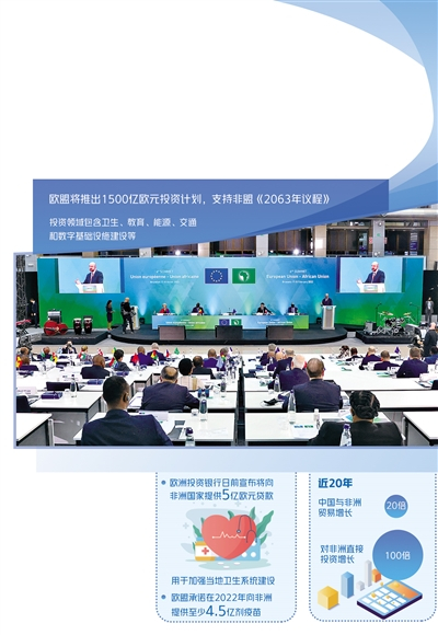 在帮助非洲经济发展、引进投资、和平与安全、移民和人员流动以及医疗保健等方面,双方都承诺加强合作。其中,最受瞩目的就是欧盟承诺的对非财政支持,欧盟希望将“全球门户”资金投资于与非洲绿色转型、交通及医疗保健相关的项目,并成为非洲首选合作伙伴。德国计划向非洲转移制氢技术,欧盟和尼日利亚达成总额8.2亿欧元的数字经济投资协议。