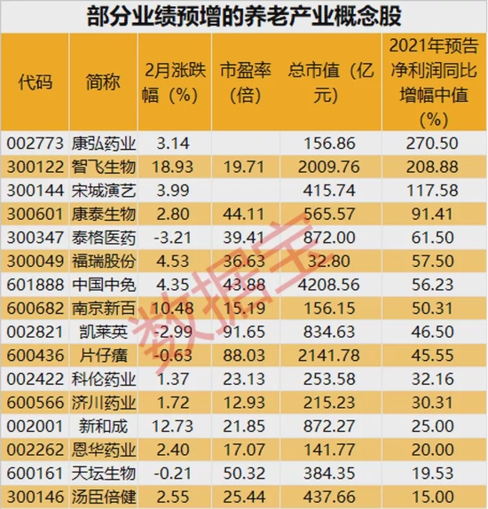 养老产业股本月以来普遍上涨,16只概念股2021年度净利润预增。