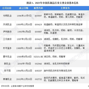 乳制品作为日常饮食中补充蛋白质和钙的重要来源,对人类健康和营养均衡具有重要的意义。目前国内行业的龙头企业主要有光明乳业、伊利股份、蒙牛乳天润乳业等。