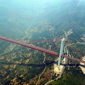 清水河大桥位于贵州开阳县与瓮安县交界处,主塔塔顶距河面垂直高度为540米,被认为是目前世界第二高桥。