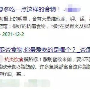 由于不同的食物对机体炎症的影响不同,因此有必要了解不同食物的抗炎或促炎效应。