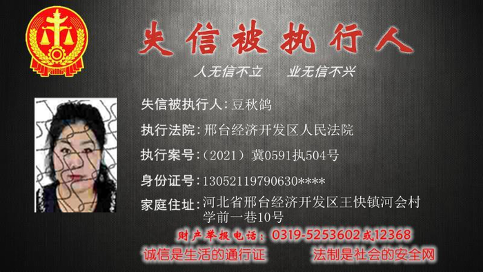 邢台开发区法院曝光2022年第1期失信被执行人↓↓↓