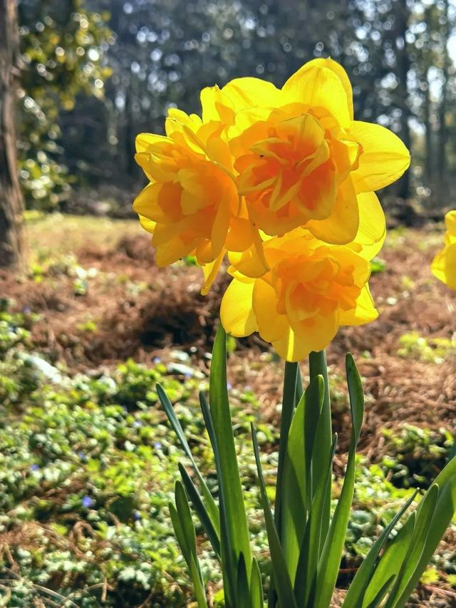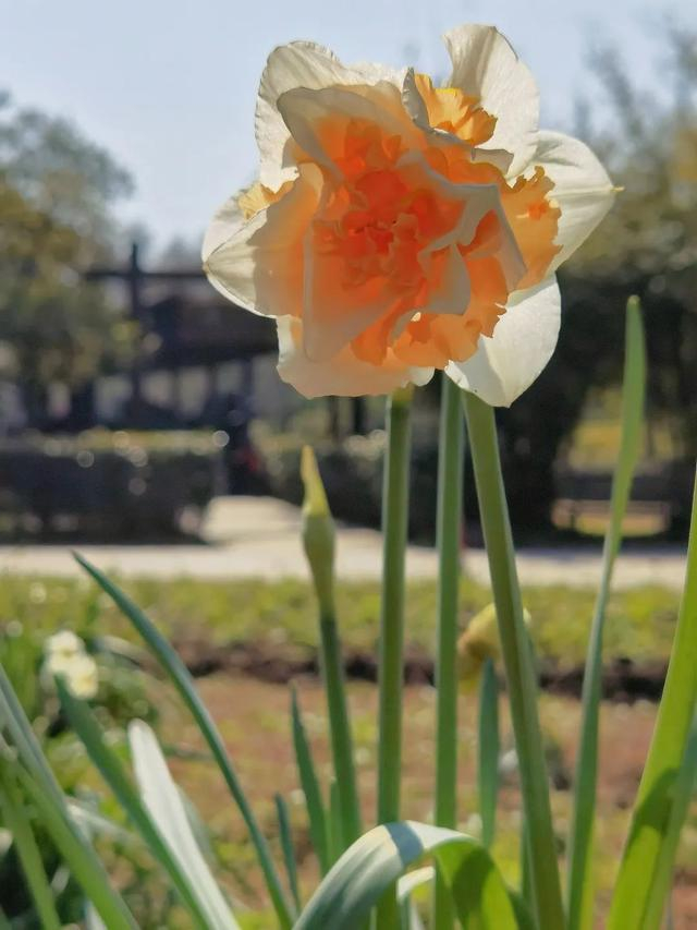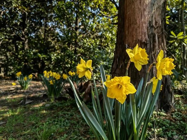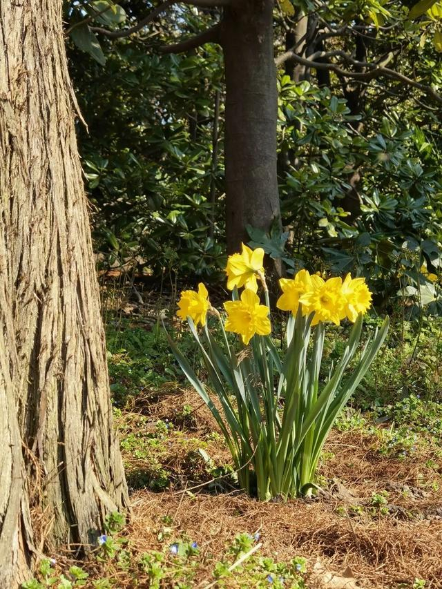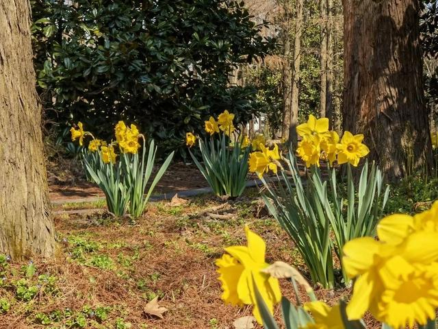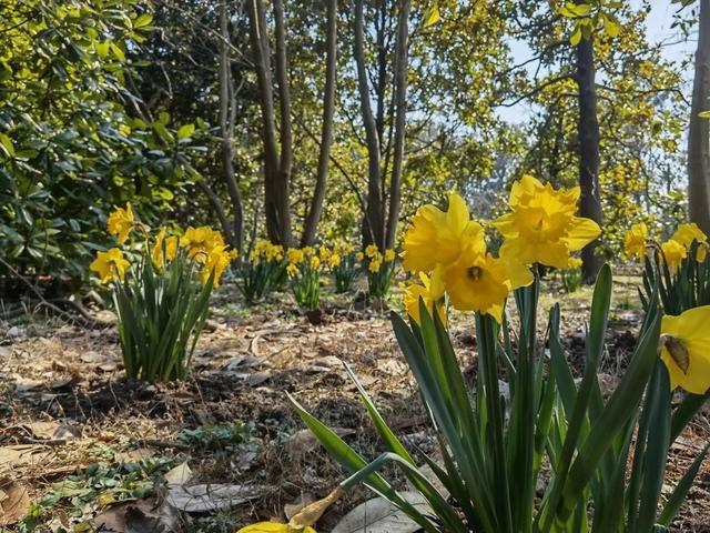 在共青森林公园的石头旁、水榭边、花境中、树荫下,还有许多前些年栽种的洋水仙。在接下来的半个多月里,它们会接二连三地绽放。大家漫步至公园的叠水区林下和观鸟长廊对面,就能赏花哦!