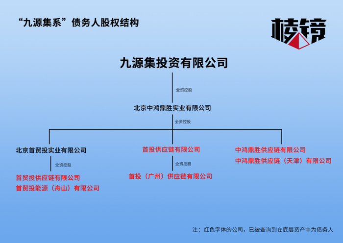 《棱镜》作者通过企查查查阅发现,首贸投背后的全资控股股东是九源集投资有限公司,后者也是中鸿鼎胜供应链公司的全资股东。