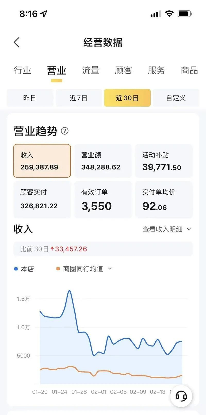 这个商家一个月净赚3-4万,美团为他提供交易+配送服务,一个月下来促成了3550单外卖,净赚2180,平均一单赚走了0.61元,这远超美团平均每单利润,根据Q3财报,美团外卖产生40.13亿笔订单,净赚8.8亿,每笔订单利润只有0.22元,之所以从他家赚的更多,是因为他的客单价远超普通店铺,高达92元每单,这还是消费者使用了优惠后实付的价格。