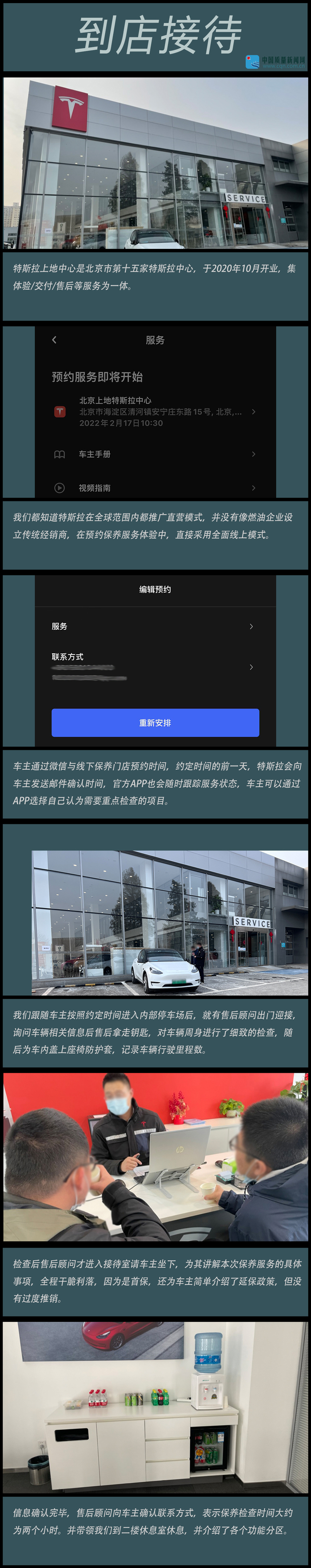 中国质量新闻网汽车频道本次跟随热心车主张先生(应车主要求文内均为化名)前往位于北京市海淀区清河镇安宁庄东路15号的北京上地特斯拉中心,深入体验特斯拉品牌售后环节,带大家体验电动汽车保养的全过程。本次是张先生爱车的首次保养服务,在整个过程中,特斯拉销售展现了完整的流程,同时在细节上有着不一样的细致。