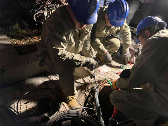 不知不觉,已是深夜。“电缆敷设完毕,试验已完成,现在送电。”21日0时30分,工作人员操作起来,为沉寂已久的小区点亮光明。“来电了!来电了!”送电一瞬间,几声稚嫩童音回响在安静的小区内。