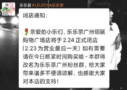 乐乐茶广州最后一家门店停业,彻底退出华南市场