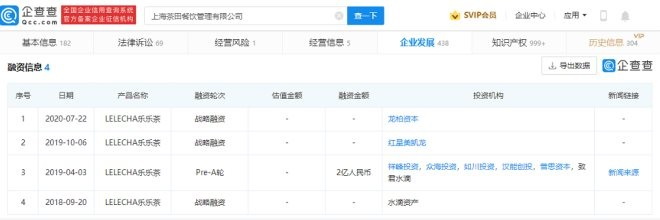 企查查APP显示,乐乐茶目前有4轮融资记录,其最近一次是在2020年7月。目前,乐乐茶共有98家直营店。
