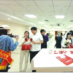 对此,他们早晨7点半就开始办理结婚登记手续,并且专门增加了一个办理跨区域结婚登记的窗口。“我们中午也一直都在办理结婚登记,保证前来办理的新人能随办随走。”