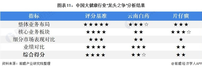 由于云南白药和片仔癀在医药健康领域布局甚广,产品战略差异化,业务侧重点各有不同。基于前文分析结果,前瞻认为,云南白药因在整体业绩、细分市场表现方面略胜一筹,目前是我国中药大健康行业企业中的“龙头”企业。