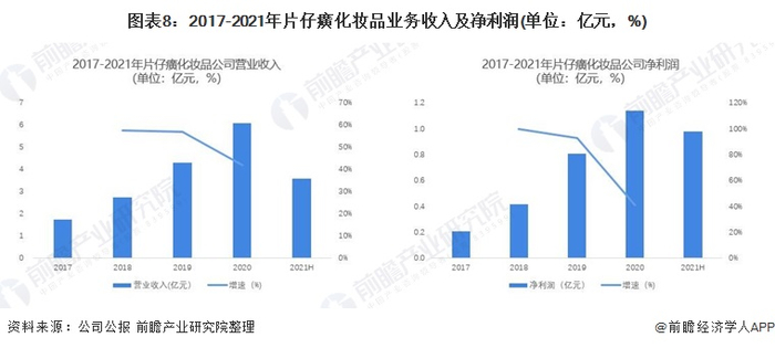 片仔癀化妆品业务历史悠久,早在1981年便推出皇后牌片仔癀珍珠膏,在功效性护肤品市场享有口碑。近年来公司化妆品业务表现亮眼,保持较水平高增速,2020年营业收入达到6.1亿元;净利润为1.14亿元。片仔癀在其2020年公报表示要启动控股子公司福建片仔癀化妆品有限公司的分拆上市项目,做大做强化妆品板块。相较之下,云南白药在化妆品板块市场表现较为暗淡。