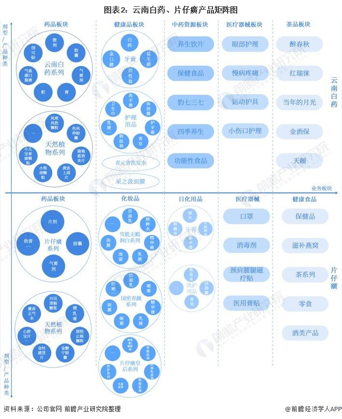 ——整体业务布局:云南白药不断完善健康产品梯队,片仔癀坚持“一核两翼”
