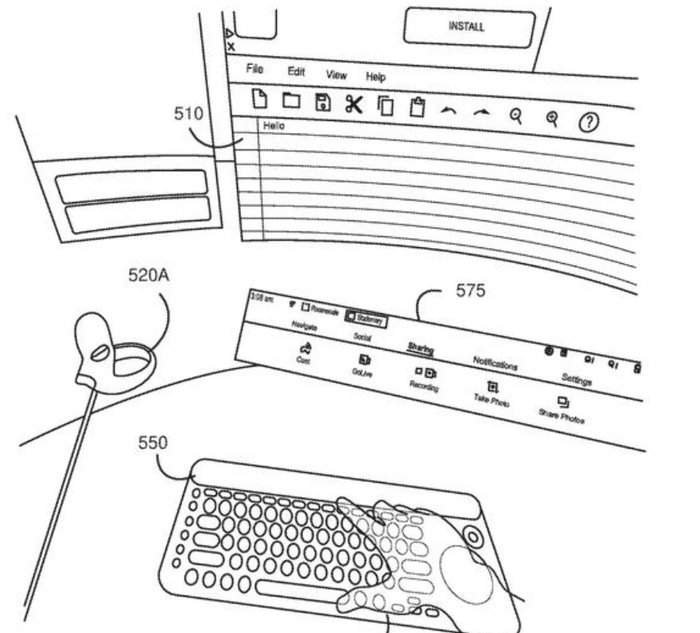 此外,虚拟现实技术的专利申请,还包括眼部追踪 (eye tracking)。例如“瞳孔转向” (‘pupil steering’)、脸部追踪(用于调适为该用户所展现的“媒体内容”)、身体姿势跟踪 ('body pose tracking‘)【通过可穿戴磁性传感系统 】、声学传感 (acoustic sensing)(能让虚拟物体被触碰时发出声音)等。