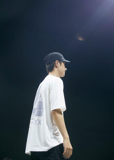照片中,他身穿短袖上衣,戴黑色棒球帽,侧颜立体氛围感十足。