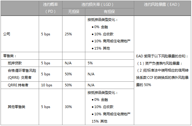 内部评级法(IRB)允许银行在一定条件下使用内部模型估算信用风险,进而估算RWAs。2017年改革工作针对内评法的修订主要集中在限制内评法的使用范围、设置风险参数底线、重新校准风险加权资产底线等方面,以收缩银行自主选择权、提升风险参数估计的可靠性。