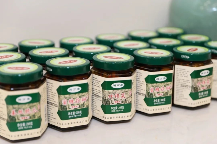 如今,酱菜厂发展订单农业,实现产、供、销无缝对接,每月就近收购原料近20吨,在解决农户蔬菜销售渠道问题的同时,更提供了就业岗位。酱菜厂不仅打开了线下市场,在线上平台也有所涉猎。依托“森活百家”电商平台,酱菜被销往全国各地,更多人尝到了来自上海金山张堰的“老味道”。