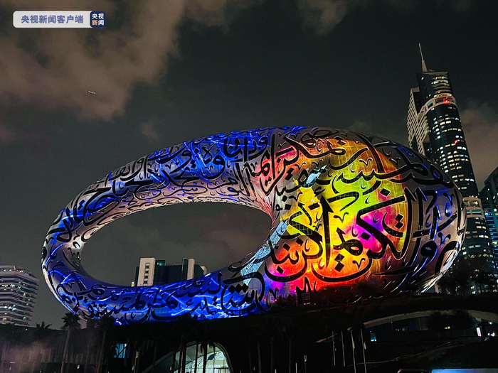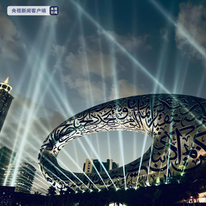 当地时间2月22日,曾被国家地理杂志评为地球上最美丽的博物馆之一的迪拜未来博物馆在极具科幻感的灯光秀中绚丽开幕。