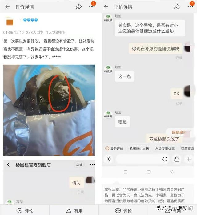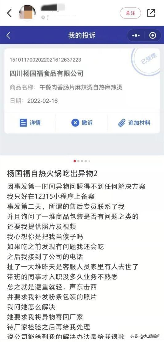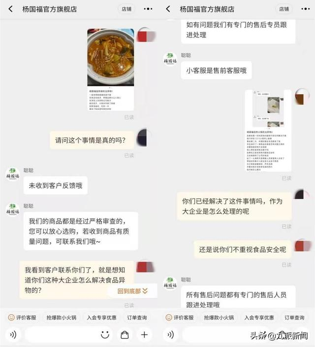 杨国福自热火锅现异物,消费者称无人回应,客服:代班同事不熟业务