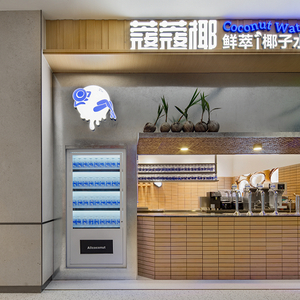 郝鑫告诉我,吧台下面有5个保温保冷的无氧设备,储存的是工厂冷链直达的椰子水, 通过无氧工艺保障鲜度。