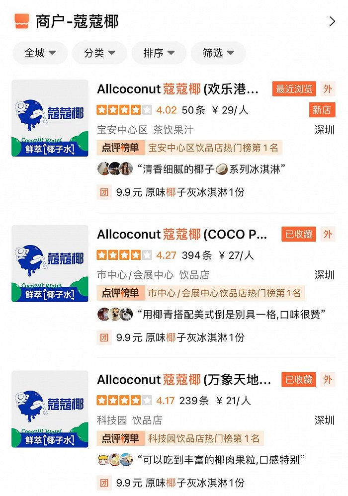 去年在深圳大火的椰子专门店,今年跑出了黑马品牌。