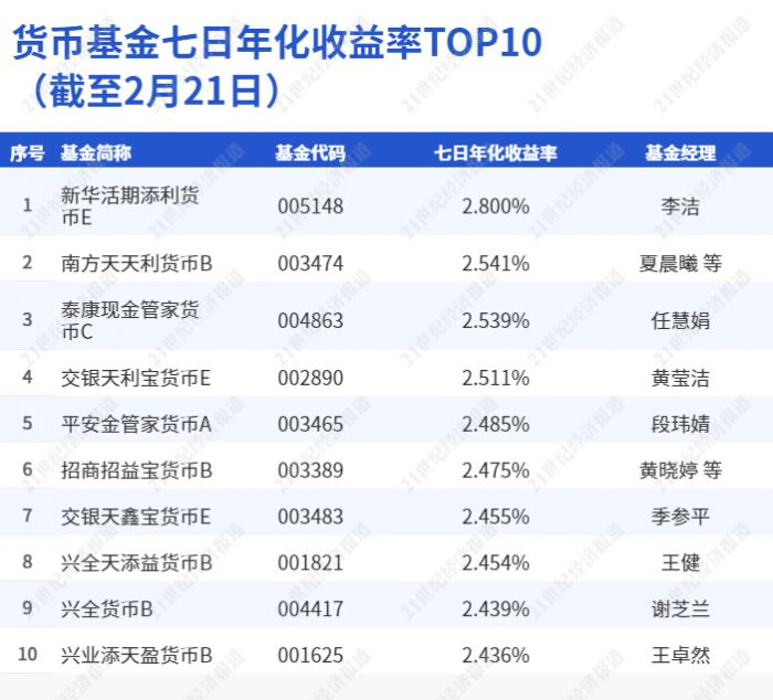 值得注意的是,“新华活期添利货币E”未曾在上周榜单中出现,此次却以七日年化收益2.800%一举摘得桂冠,表现十分亮眼。
