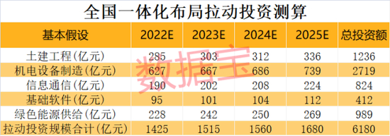 “东数西算”投资总额度目前没有官方的数据,类比“南水北调”、“西电东送”和“西气东输”,可以预见的是,“东数西算”项目建设周期将是数十年的长线工程,同时作为重资产投资项目,投资体量或在数千亿级别。根据IDC圈预测,到2025年韶关数据中心集群投资超500亿元。以此推算,“东数西算”仅10个数据中心集群到2025年总投资规模就有望达4000亿元~5000亿元。