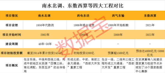 “西电东送”和“西气东输”均为“西部大开发”重要工程,初始投资规模则分别超过5000亿、1500亿元。随着项目的持续进行,三大项目的投资规模大概率将进一步扩大。