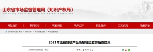 2022年2月15日,山东省市场监督管理局发布了《2021年无线耳机产品质量省级监督抽查结果》,这是2021年第3批省级监督抽查共抽查流通领域无线耳机产品66批次。