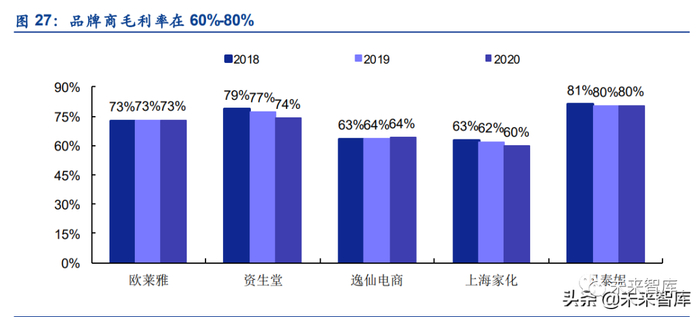 2.2.3. 下游品牌商及渠道商毛利率在 60%-80%左右