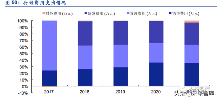 从整体来看 2021 年上半年公司销售费用与研发费用占比接近,反映出公司高度重视研 发投入,研发端的高投入也将持续提升公司核心竞争力。2018-2021H1 研发费用分别为 2062.76 万元 、2254.33 万元、2354.66 万元和 1252.90 万元。