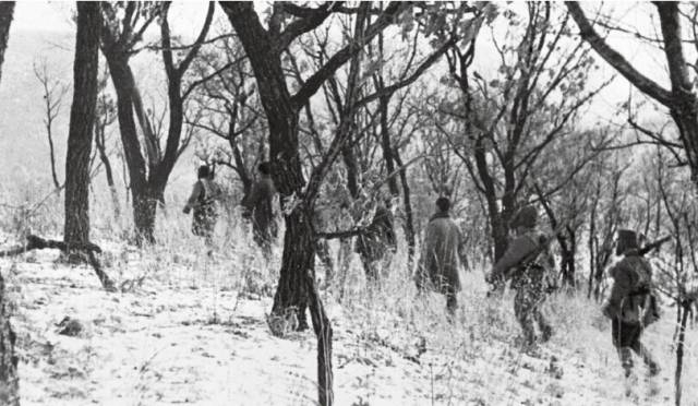 为了建立巩固的东北根据地,东北民主联军大力消灭日伪残余和国民党土匪。这是他们在牡丹江一带的林海雪原中剿匪。