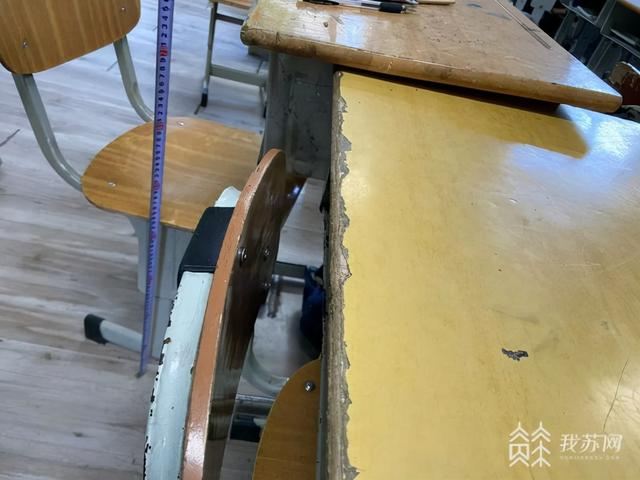 中午,在南京市第九初级中学,教室里的课桌椅非常醒目,蓝色的桌面干净整洁。初一(7)班王略说,以前的桌椅是木头材质,桌面都是划印,不仅写作业不方便,坐着也很难受。“以前桌椅会晃,有时候需要我们用餐巾纸垫着,现在这个桌椅挺好的,挺稳的。”