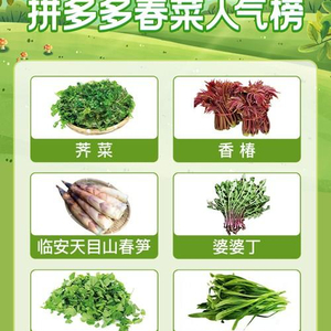 除香椿外,广受欢迎的荠菜,风靡江浙沪的草头(金花菜)、马兰头,临安天目山的春笋,江苏的菊花脑、婆婆丁,东北山珍柳蒿芽、刺嫩芽等野菜近期均在拼多多平台热销,部分春菜还被纳入了百亿补贴,价格相较其他平台均便宜30%-50%。拼多多平台数据显示,2月中旬以来,平台野菜搜索量增加137%,春菜相关订单量翻倍,多家店铺销量达上万单。
