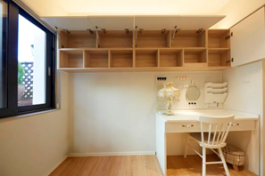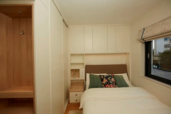 改造后,设计师将次卧设计成一个多功能房,既能满足王兰兰的学习、休闲需求,又能实现客卧功能;大尺寸的衣柜和吊柜,也极大地加强了储物功能。