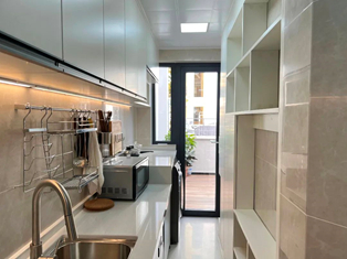 改造后,设计师重新规划储物布局,设计整体橱柜,实现顺畅的动线操作流程,增加了大量收纳空间。让日常使用便利。