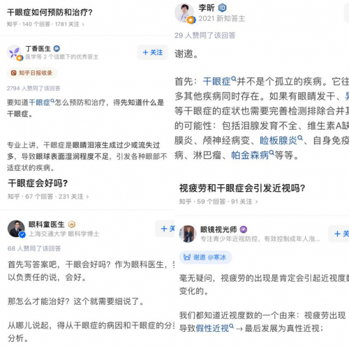 对此,不少眼科专业人士在知乎等媒体平台发声,深入探讨干眼症的预防和治疗问题。