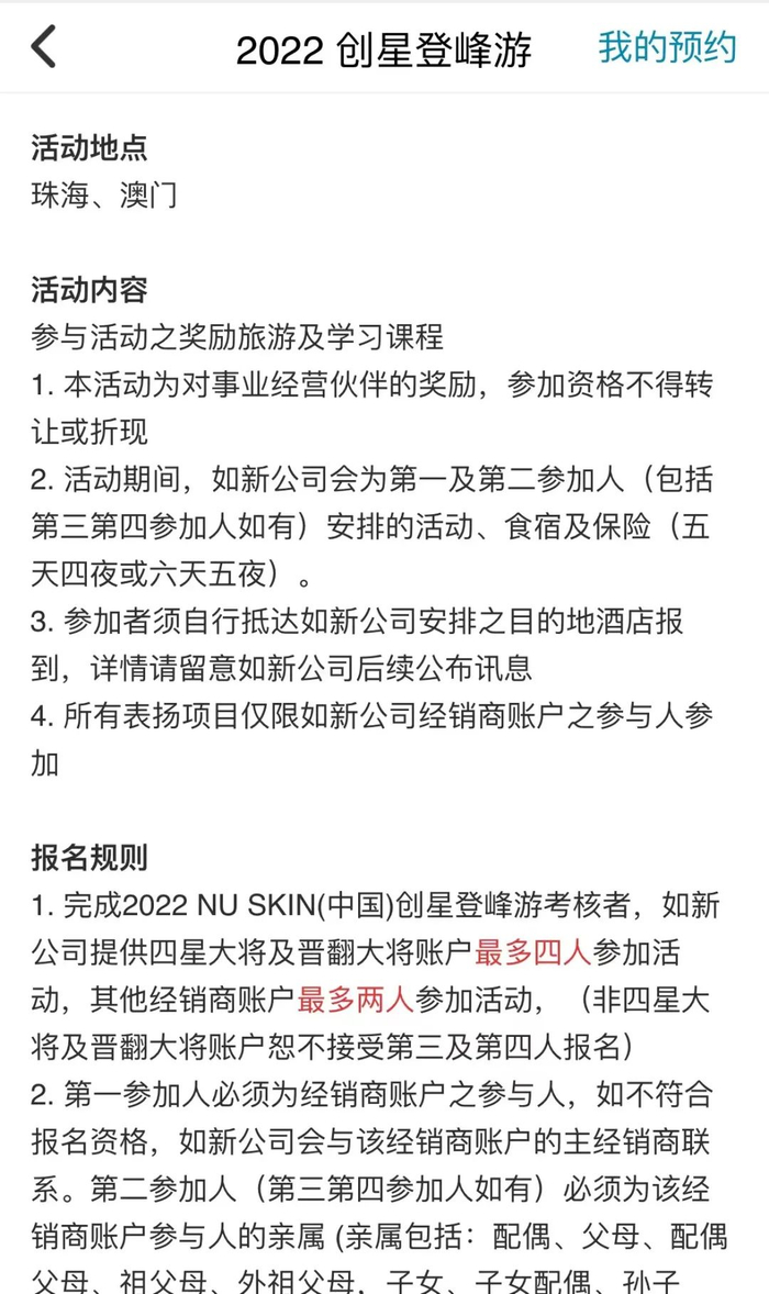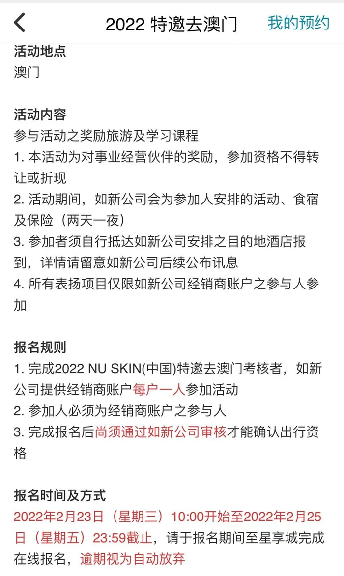 这个活动的内容介绍同样是“参与活动之奖励旅游及学习课程”。活动的地点为珠海、澳门。