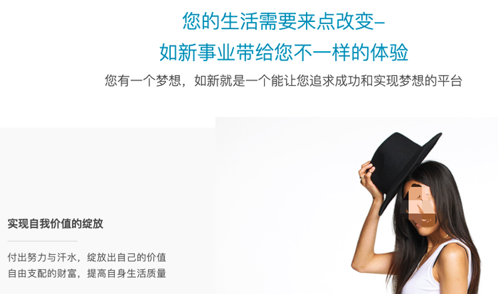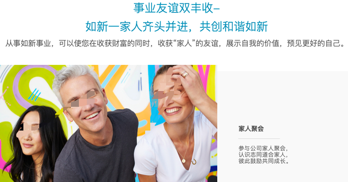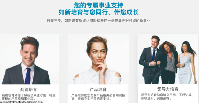 在如新官网招揽直销员的页面中,有几个词出现频率很高:成功、梦想、事业、家人。