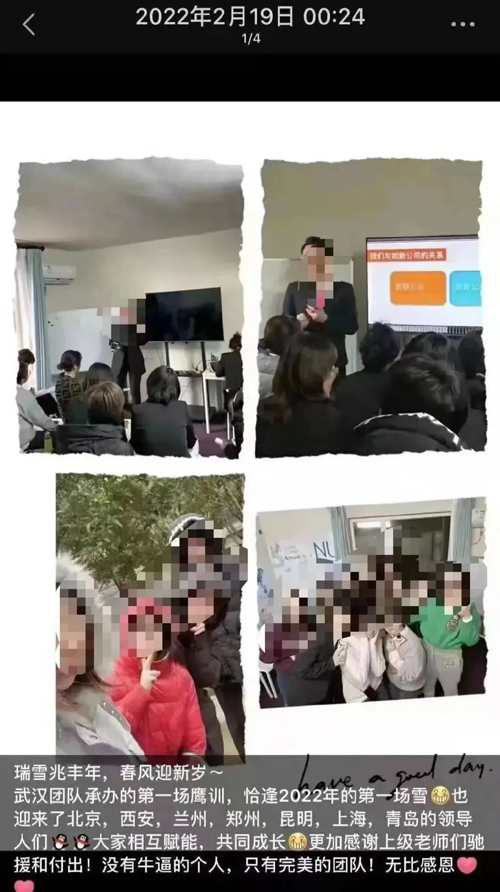 “也不算是严格意义上的培训。就是想聚一聚,北京摘星了,我们商量着来武汉聚聚,来的人还带了亲朋好友。团队之间互相交流了一下心得、企业文化、销售思路。大家干劲都很足,就是想把产品卖好”,顾某这样说。