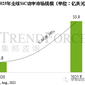 据TrendForce预测,2025年全球SiC功率器件市场规模将达到33.9亿美元,GaN功率器件市场规模也将达8.5亿美元。