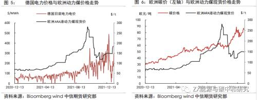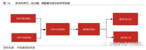 天然气价格过高提升煤炭发电的经济性。天然气与煤碳有替代性,煤电作为劣后的发电方式,受到天然气价格与碳价格的影响。如前所述,当天然气价格过高时,煤炭发电经济性凸显,煤炭发电的比重将上升,煤炭与碳配额的需求也将随之增加,进而推动二者的价格上涨。