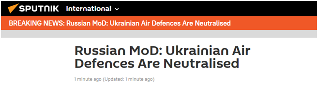 俄卫星社最新消息称,俄罗斯国防部表示,乌克兰的防空系统已经失效。
