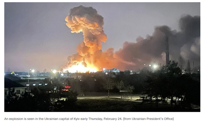 乌克兰国家边防称:“大约凌晨5点,乌克兰与俄罗斯联邦和白俄罗斯共和国之间的国家边界遭到了受到白俄罗斯支持的俄罗斯军队的袭击”。