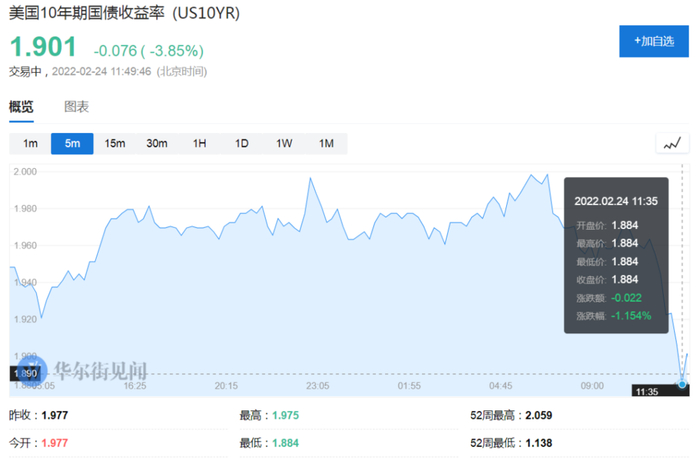 2月24日周四,继隔夜美股集体下挫之后,今日美股指数期货表现疲软。美国三大股指期货均跌超2%,恒指重挫3%,日韩跌逾2%,欧洲Stoxx 600指数期货跌超3%。10年期美债收益率下行跌破1.90%关口。黄金跳涨20美元。