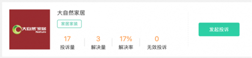 而另一个投诉平台上显示,大自然家居的投诉有17起,解决量仅3起,投诉解决率仅17%。