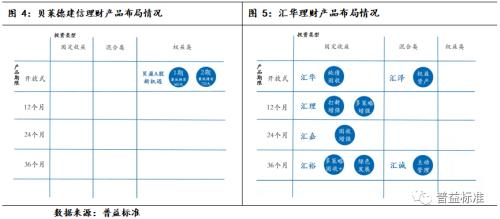 (2)在业绩比较基准的设定上,汇华理财-汇泽和贝盈A股1期和2期都是挂靠指数收益率,但汇华理财-汇泽挂靠的是中证800指数和中证全债指数,而贝盈A股1期和2期挂靠的是沪深300指数和活期存款基准利率,更注重股市行情。