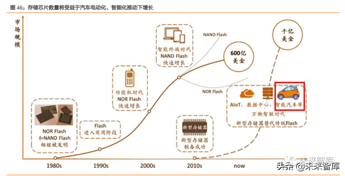 5.存储芯片:汽车存储系统随着智能化水平提升容量和性能将实现快速增长,汽车将成为 存储器步入千亿美金市场的核心因素