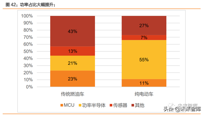 4.功率半导体:传统燃油车功率半导体单车价值量达到 87.6 美元,其在新能源汽车端的单 车价值量达到 458.7 美元,实现四倍以上增长